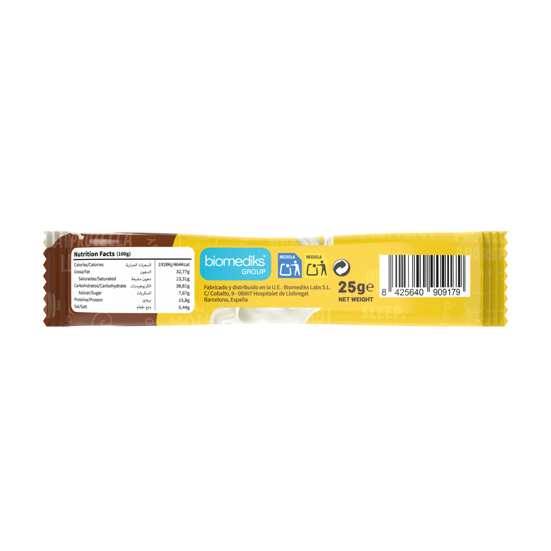Chocolate blanco y crema de cacahuete: Combinación perfecta de suavidad e intensidad.Crujiente oblea: Contraste delicioso con el relleno cremoso.Fórmula equilibrada: Energía ideal para cualquier momento del día.Joe’s Protein Bar es el snack funional que transforma cada bocado en un placer único.