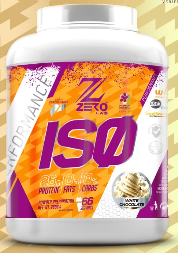 Iso de Zerolab es un complemento alimenticio en polvo a base de aislado, concentrado e hidrolizado de proteína de suero de leche con edulcorante y aroma.