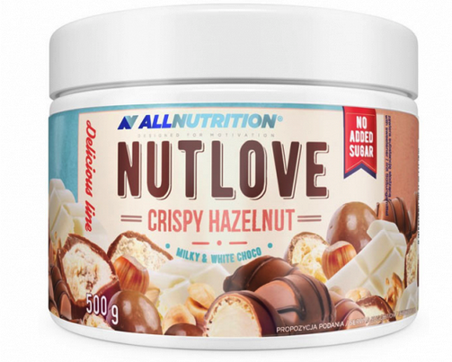 - Producto destinado a personas mayores de 18 años.NUTLOVE CRISPY HAZELNUT (CHOCO BLANCO Y LECHE)Descripción: Crema de leche y avellanas con edulcorante. Contiene azúcares naturalmente presentes.Cantidad neta: 500 gIngredientes:Edulcorante: maltitol, aceite vegetal de karité, avellana (10%), copos de chocolate blanco sin azúcar (10%) [edulcorante: maltitol, grasa de cacao, leche entera en polvo, masa de cacao, emulgente: lecitina de soja, aroma natural de vainilla, masa de cacao min. 30%], leche desgrasada en polvo (8%), suero de leche en polvo, emulgente: lecitina de colza, aromas, sal.Información nutricional: