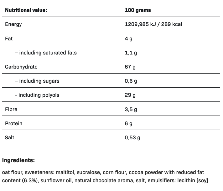 Descripción: Cereales para el desayuno con sabor a chocolate, endulzados sin azúcares añadidos. Contiene azúcares naturalmente presentes.