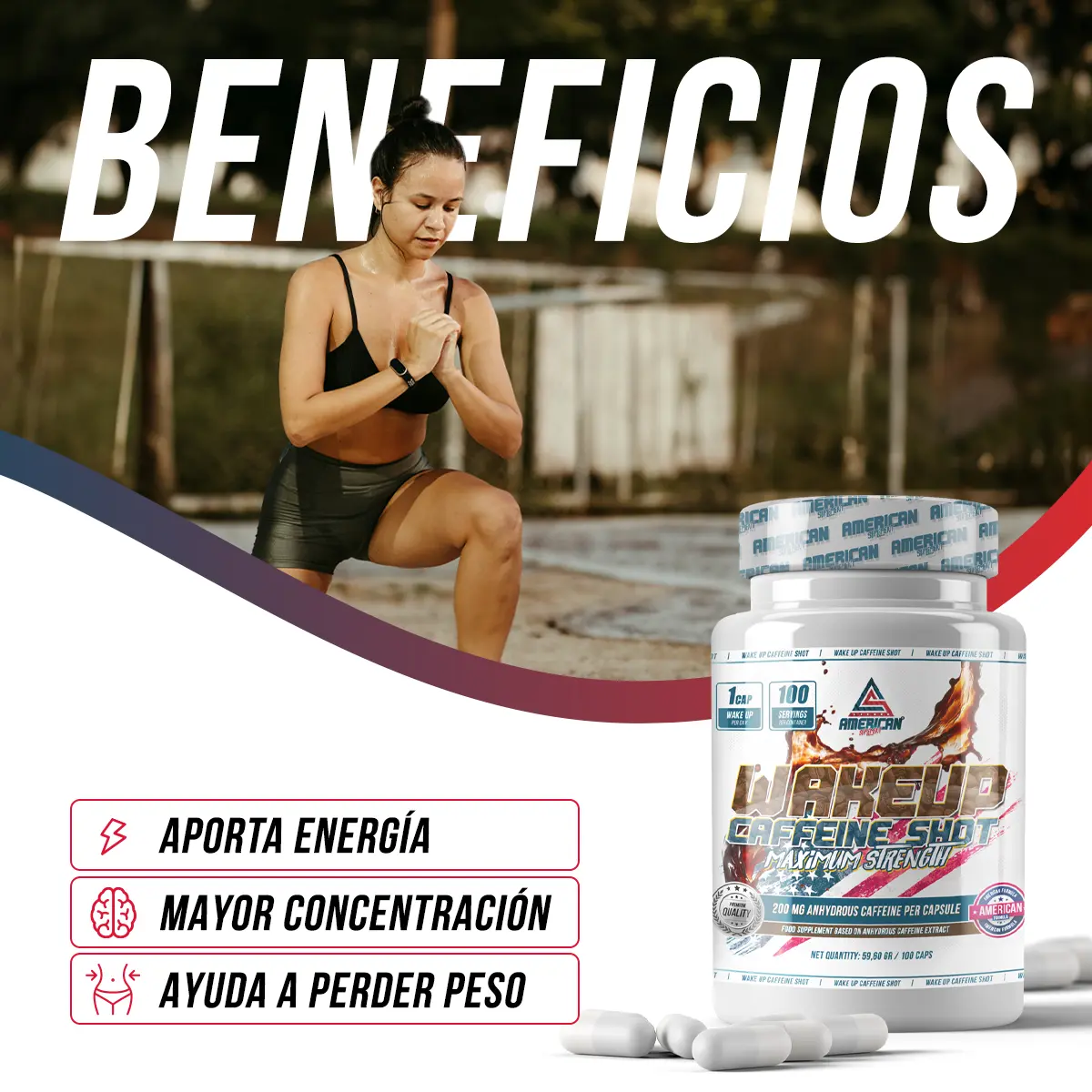 WAKE UP CAFEÍNA es uno de los productos favoritos de AMERICAN SUPLEMENT. Se trata sin duda del mejor estimulante del sistema nervioso central. Uno de los suplementos deportivos básicos para aportar energía y eliminar la somnolencia.