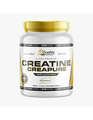 La Creatina Quality Nutrition (Creapure®) es pura, un monohidrato de creatina micronizado sin cortar. Nosotros no añadimos rellenos, ni agentes de flujo ni azúcares, ésta es la realidad. De hecho, la creatina en este bote es 99,9% Creatine (Creapure®).