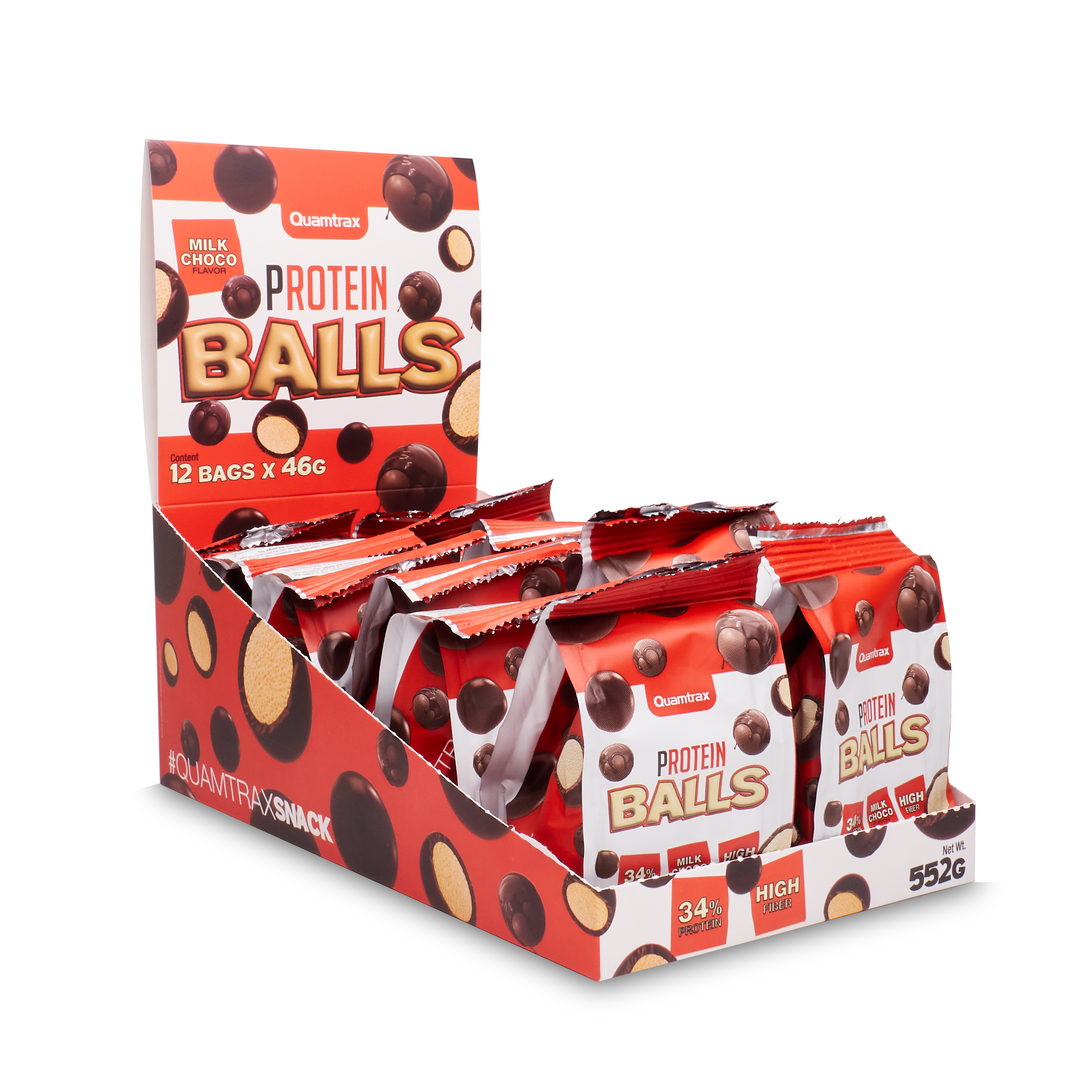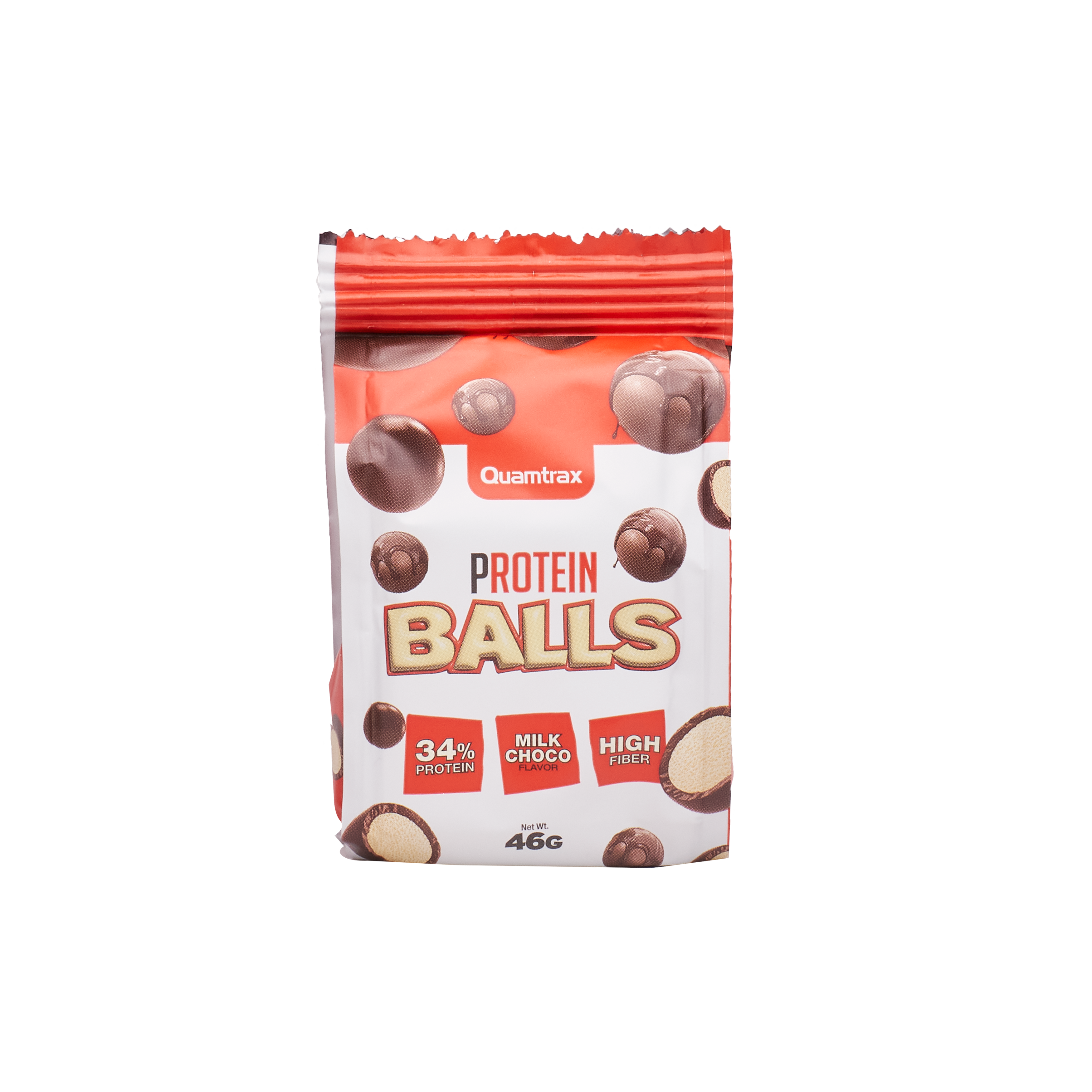 Protein Balls de Quamtrax Essentials son unas crujientes y deliciosas bolitas de cereal cubiertas con una exquisita capa de chocolate con leche. Con un 34% de proteína, alto contenido en fibra, bajo en azúcares y carbohidratos, son el snack perfecto para cualquier momento del día. Diseñadas para personas activas, deportistas y quienes buscan cuidar su alimentación, estas bolitas combinan placer y nutrición en cada bocado.