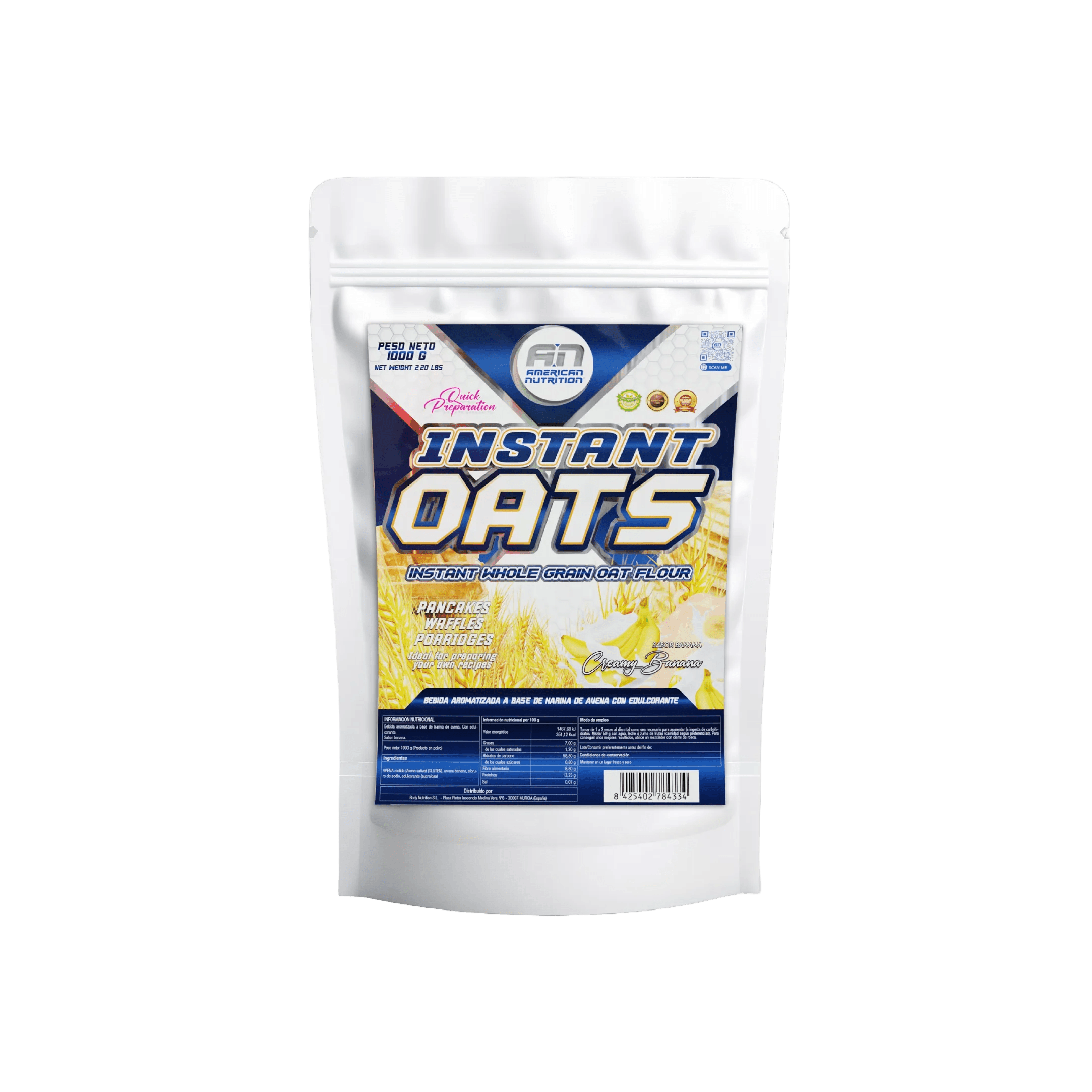 Instant Oats es una harina de avena instantánea de grano entero, natural y disponible en otros sabores. Contiene avena molida (Avena sativa) con gluten y cloruro de sodio. En los otros sabores, además se incluye saborizante y edulcorante (sucralosa).