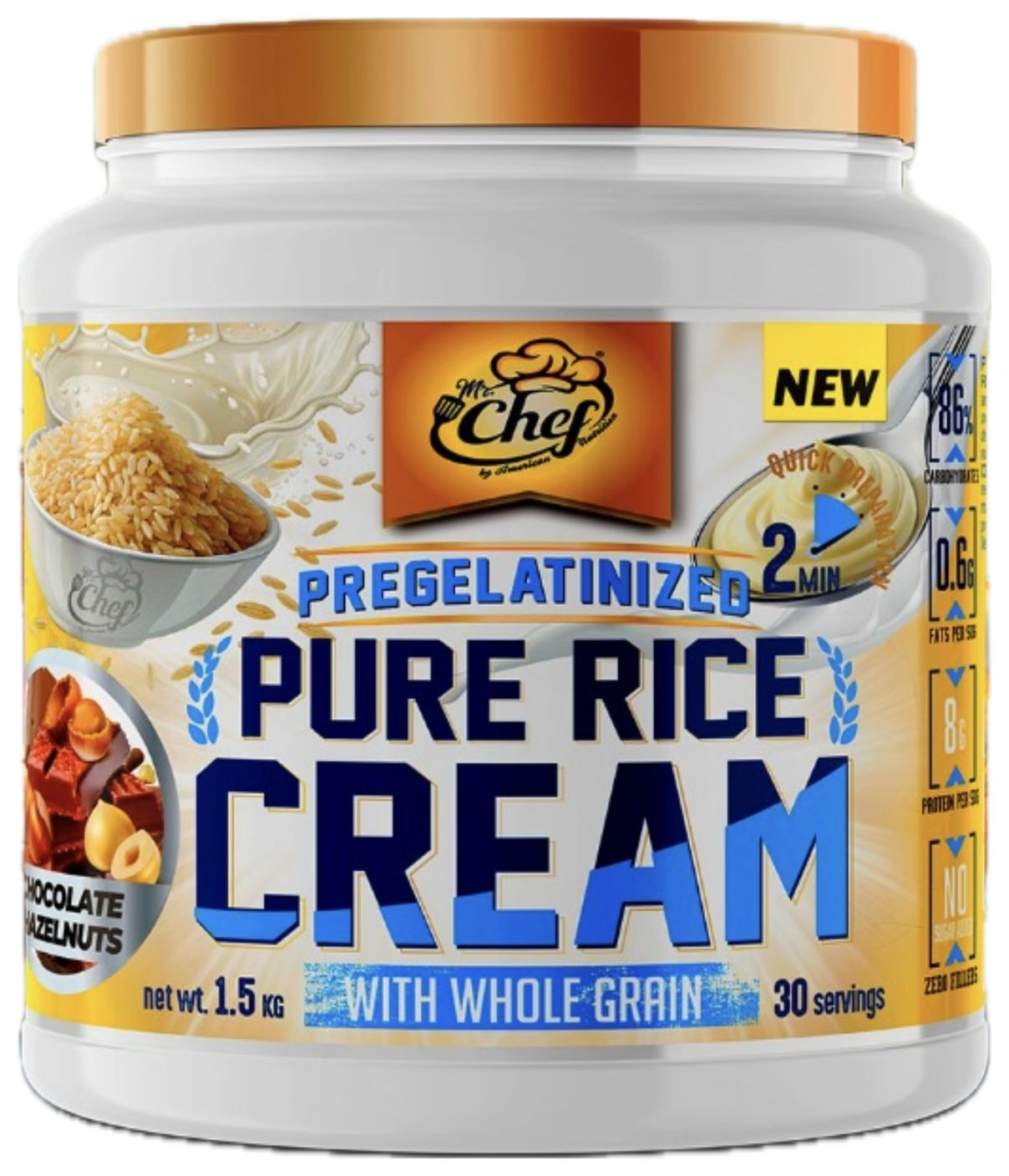 El sabor natural contiene harina de arroz pregelatinizada y edulcorante (sucralosa), mientras que los otros sabores incluyen harina de arroz pregelatinizada, aroma y edulcorante (sucralosa). Cada porción ofrece una excelente fuente de carbohidratos, con un perfil nutricional equilibrado que apoya la recuperación muscular y la recarga de glucógeno. Ya sea como parte de tu desayuno, una comida rápida entre sesiones de entrenamiento, o como una opción nutritiva post-entreno, la crema de arroz se ajusta a tus necesidades dietéticas y de rendimiento.